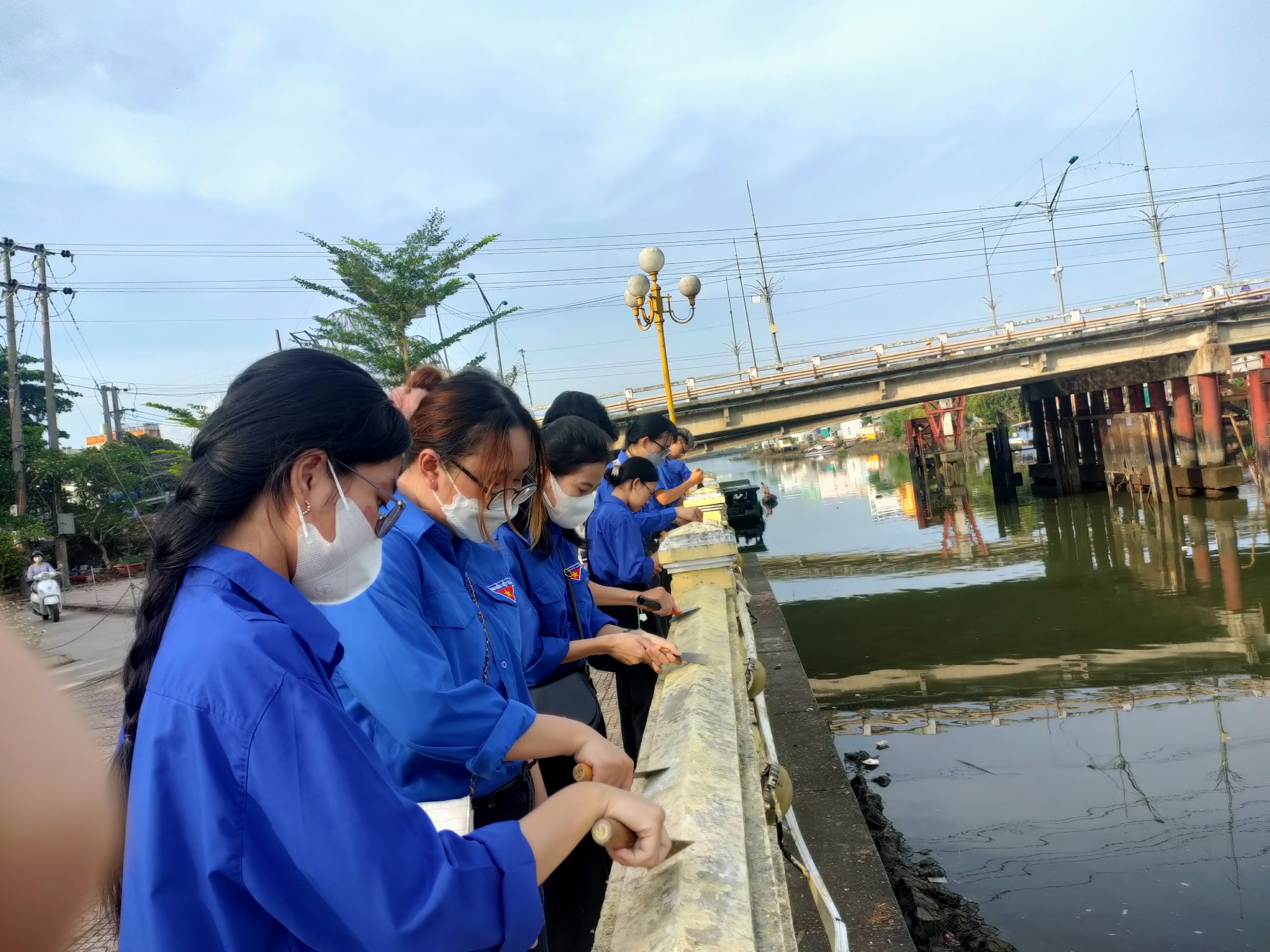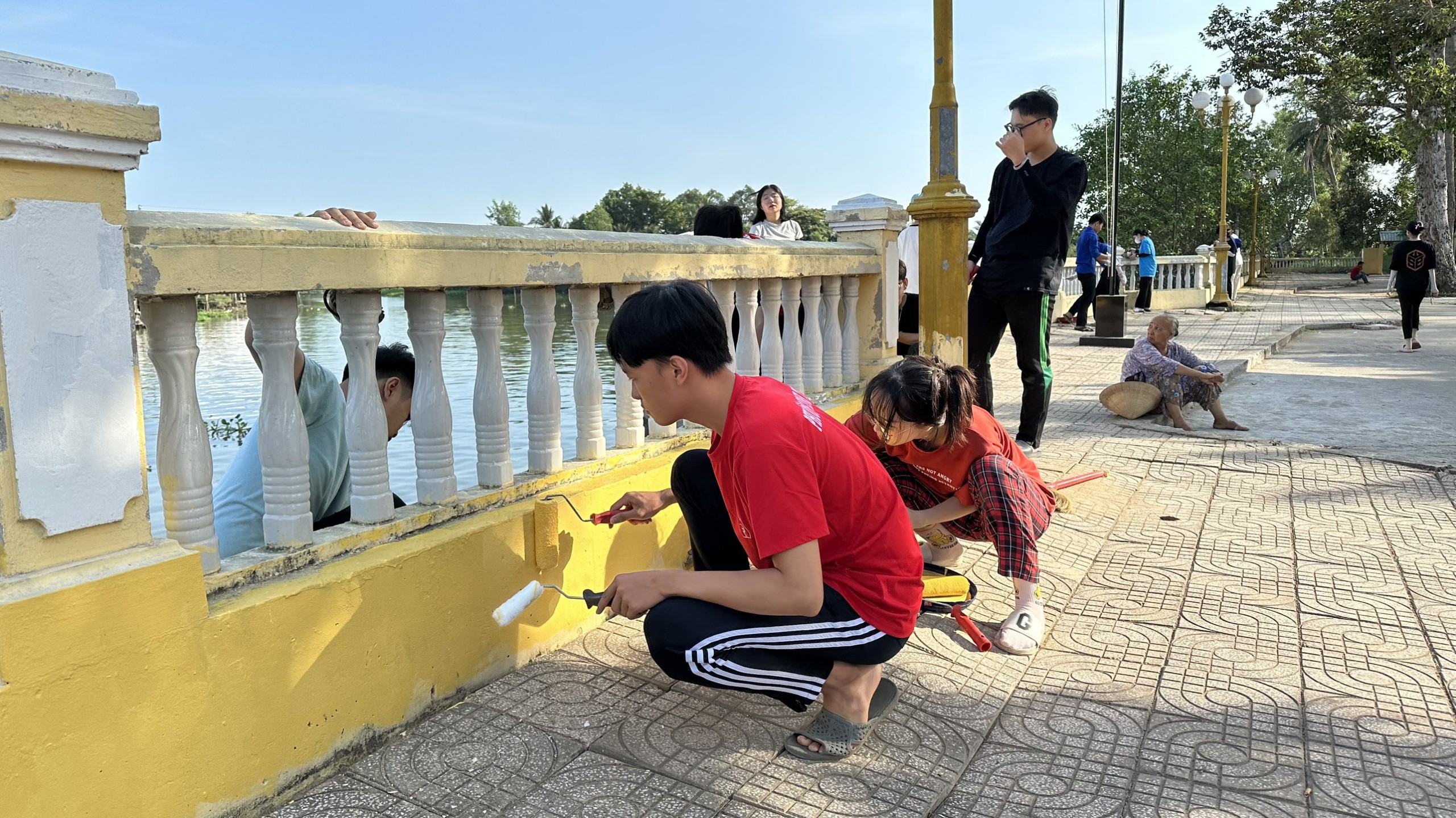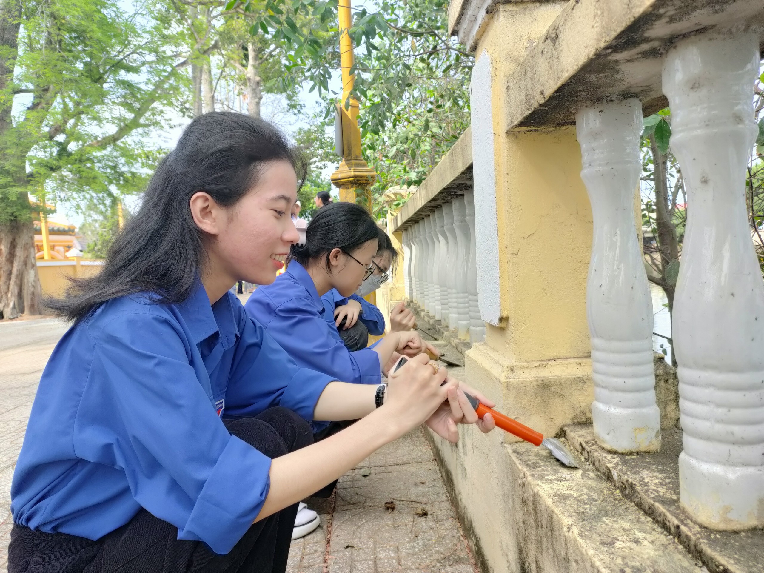 Dưới sự hướng dẫn của Ban quản lý di tích, các bạn đoàn viên, thanh niên đã tiến hành vệ sinh, cạo bỏ lớp sơn cũ và sơn mới lại toàn bộ hệ thống hàng rào ven sông. Dù công việc vất vả, nhưng ai nấy đều hăng hái, vui vẻ vì được góp một phần công sức nhỏ bé của mình vào một công việc chung đầy ý nghĩa.