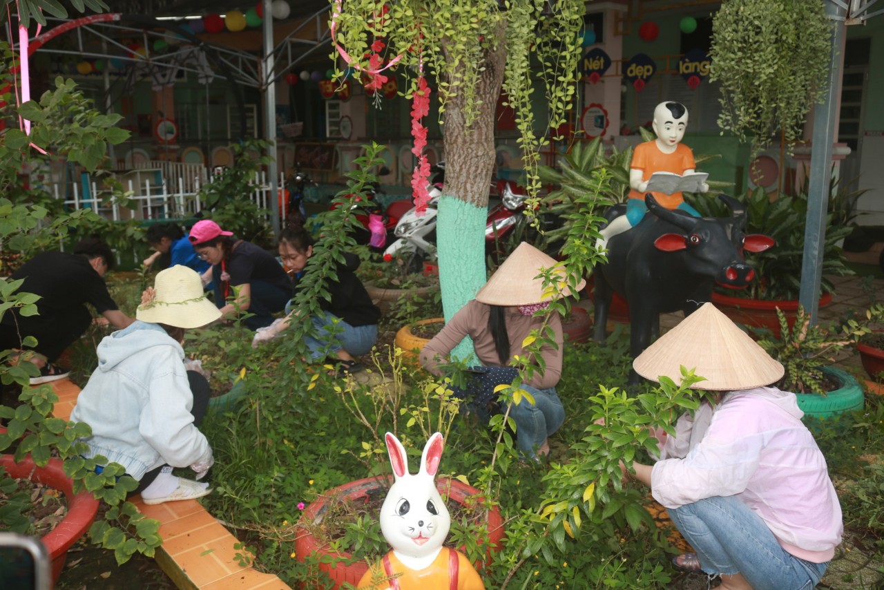 - Vệ sinh trường học: Vệ sinh khuôn viên trường tiểu học và trường mầm non Đông Thắng, tạo môi trường học tập sạch sẽ, thoáng mát cho các em học sinh.