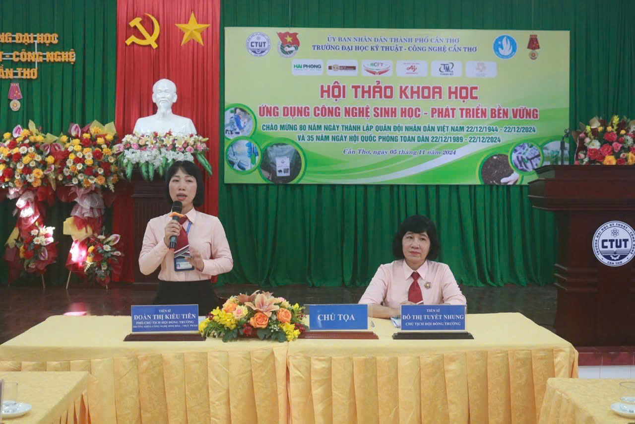 Ngày 05/11/2024, Đoàn Thanh niên – Hội Sinh viên Trường Đại học Kỹ thuật – Công nghệ Cần Thơ phối hợp cùng Trường tổ chức Hội thảo Khoa học với chủ đề “Ứng dụng Công nghệ Sinh học – Phát triển Bền vững”. Hội thảo được tổ chức nhằm chào mừng kỷ niệm 80 năm Ngày Thành lập Quân đội Nhân dân Việt Nam (22/12/1944 – 22/12/2024) và 35 năm Ngày Hội quốc phòng toàn dân (22/12/1989 – 22/12/2024). Đây là diễn đàn quan trọng để các nhà khoa học, chuyên gia và các bên liên quan trao đổi, chia sẻ kinh nghiệm về ứng dụng công nghệ sinh học trong các lĩnh vực khác nhau, hướng tới sự phát triển bền vững.