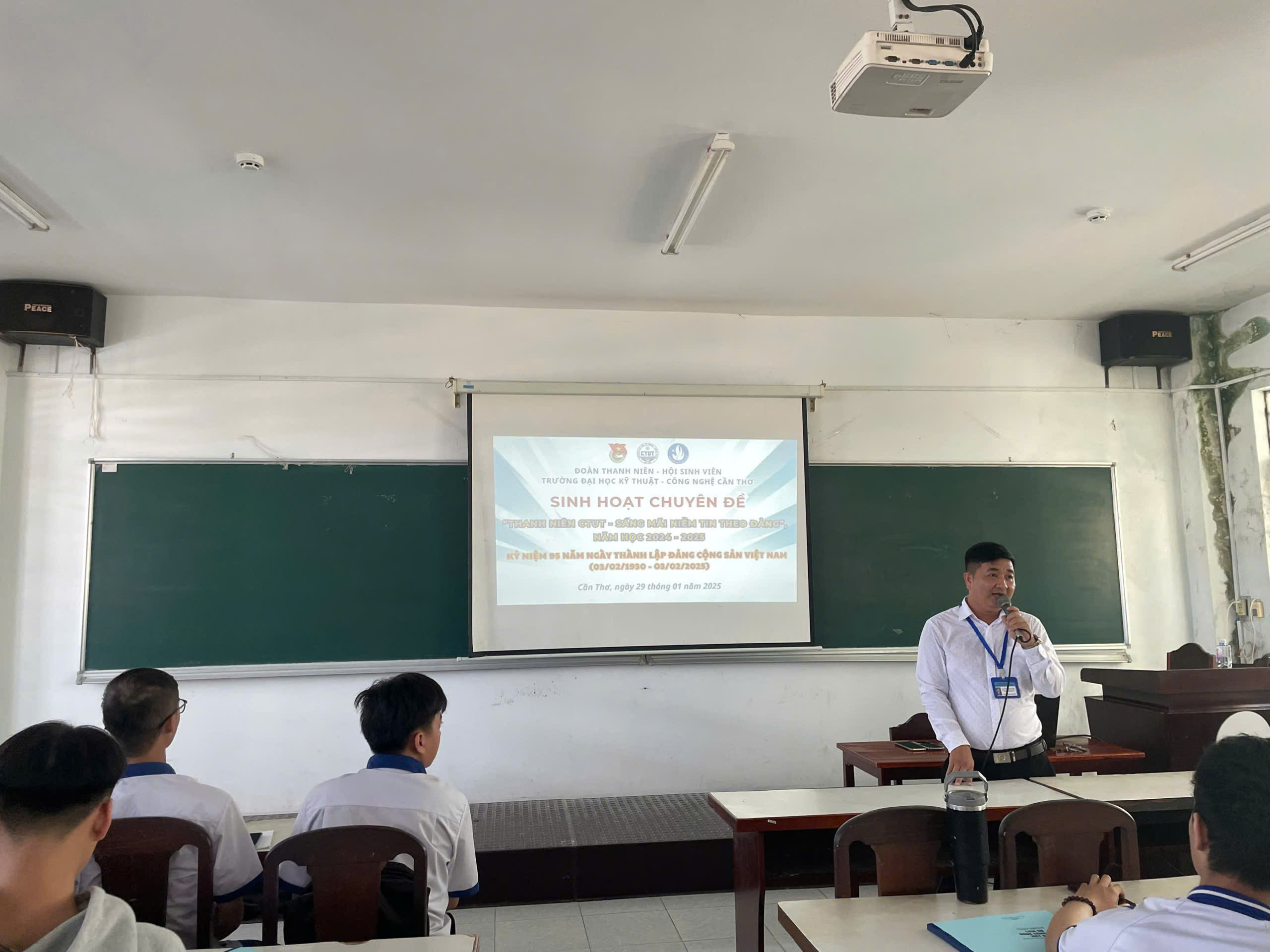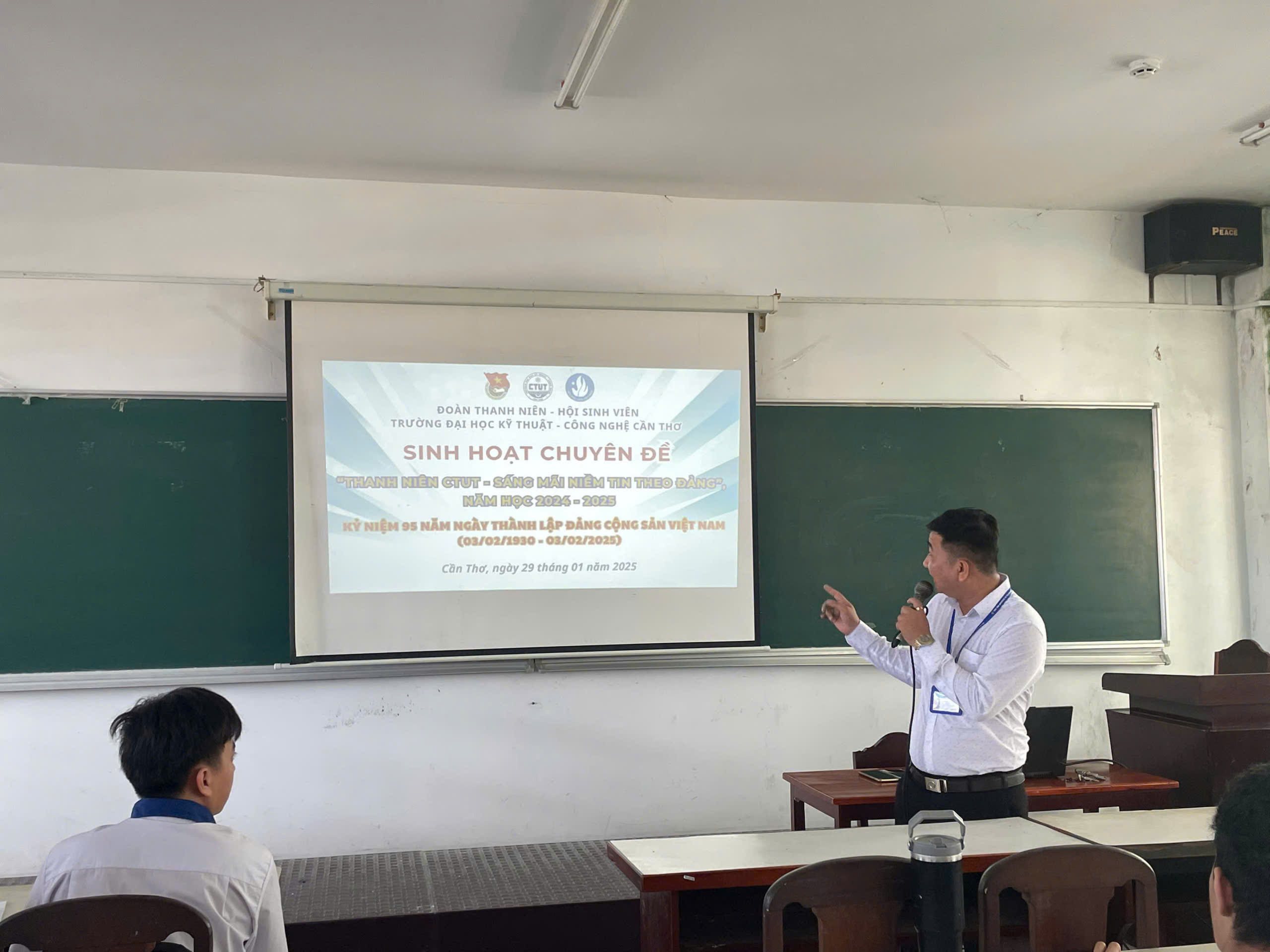 Ngày 29/01/2025, Đoàn Thanh niên – Hội Sinh viên Trường Đại học Kỹ thuật – Công nghệ Cần Thơ tổ chức buổi sinh hoạt chuyên đề với chủ đề “Thanh niên CTUT – Sáng mãi niềm tin theo Đảng” trong năm học 2024 – 2025 tại Giảng đường C603, nhằm chào mừng kỷ niệm 95 năm Ngày thành lập Đảng Cộng sản Việt Nam (03/02/1930 – 03/02/2025).