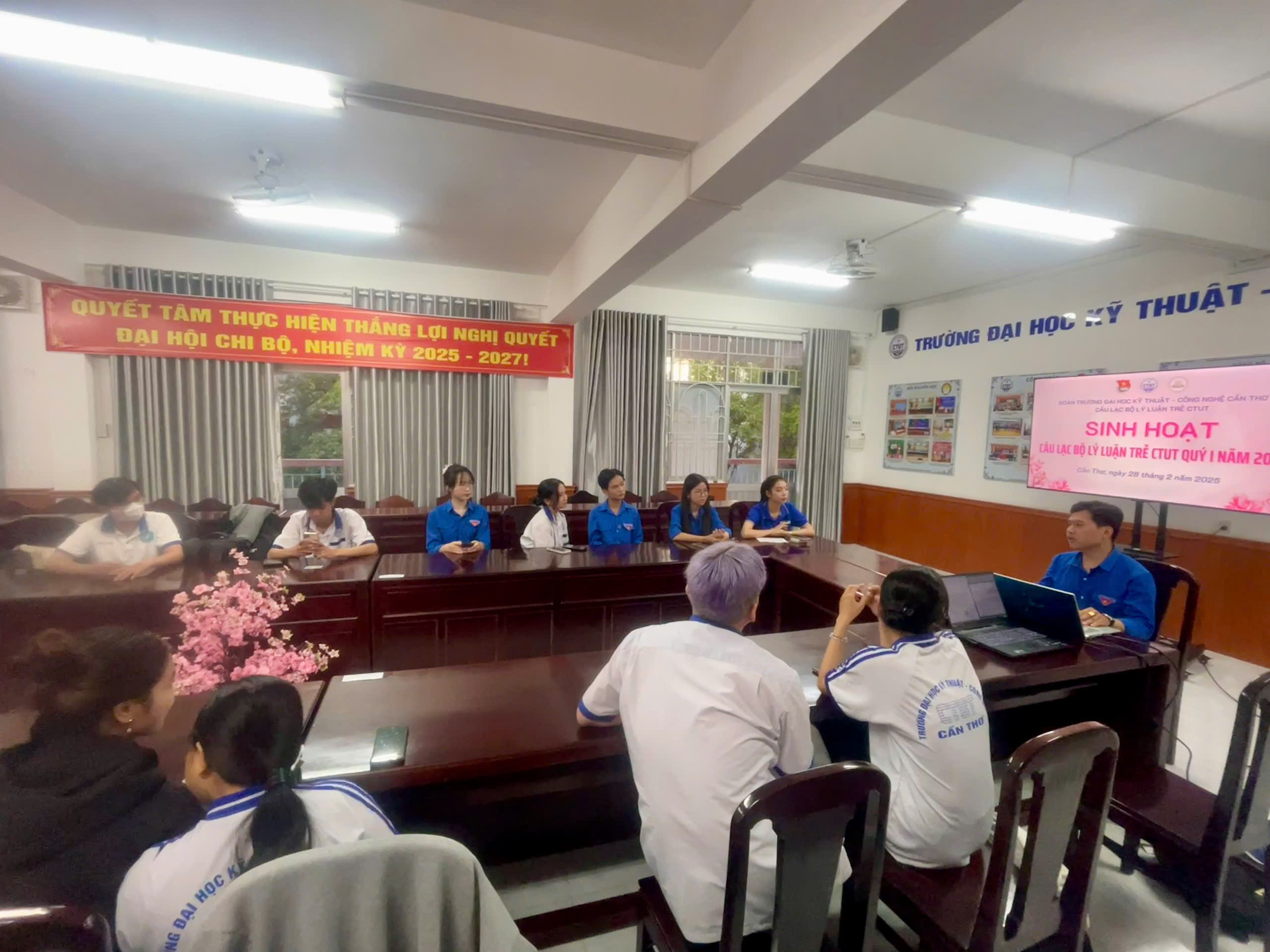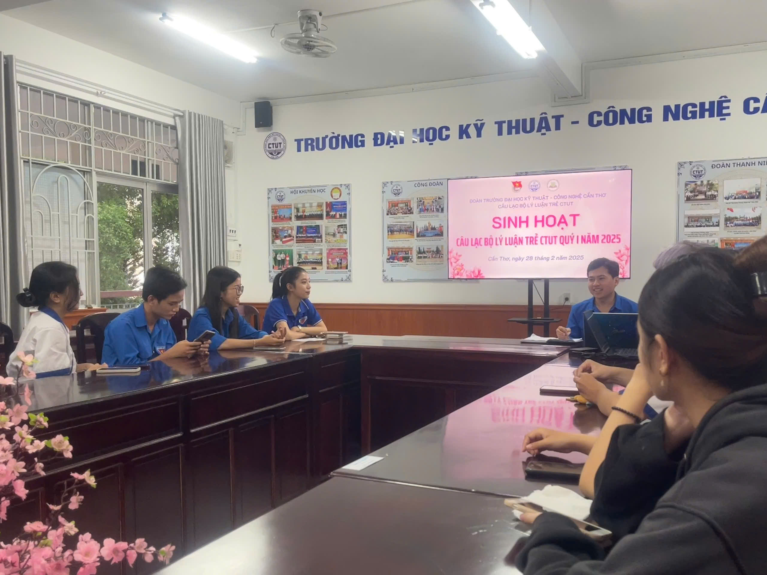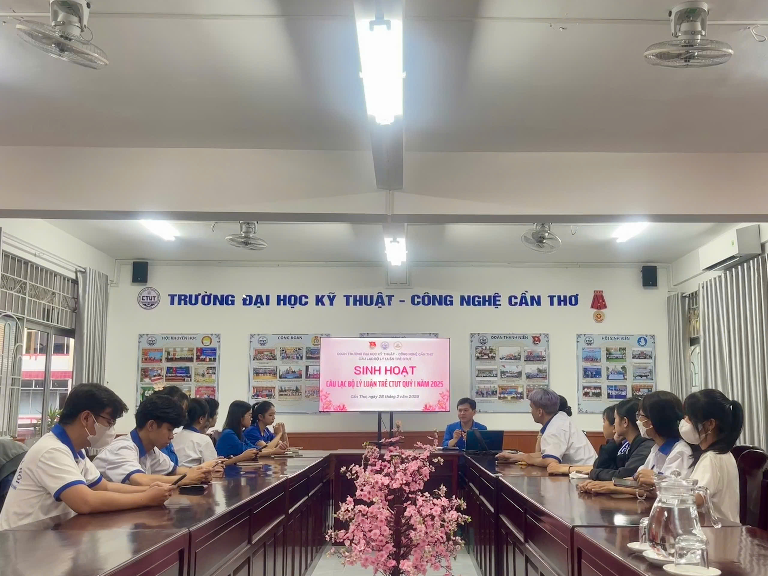 Nhằm bồi dưỡng lý tưởng cách mạng, nâng cao bản lĩnh chính trị và tư duy phản biện cho đoàn viên, sinh viên, vào ngày 28/02/2025, Câu lạc bộ Lý luận trẻ CTUT đã tổ chức thành công buổi sinh hoạt Quý I năm 2025 tại Phòng Hội thảo 2 CTUT với chủ đề thiết thực và ý nghĩa: “Nâng cao nhận thức lý luận, đạo đức cách mạng và lối sống văn hóa cho thanh niên trong thời đại mới”. Buổi sinh hoạt đã thu hút sự tham gia của hơn 20 đoàn viên, sinh viên là thành viên của Câu lạc bộ.
