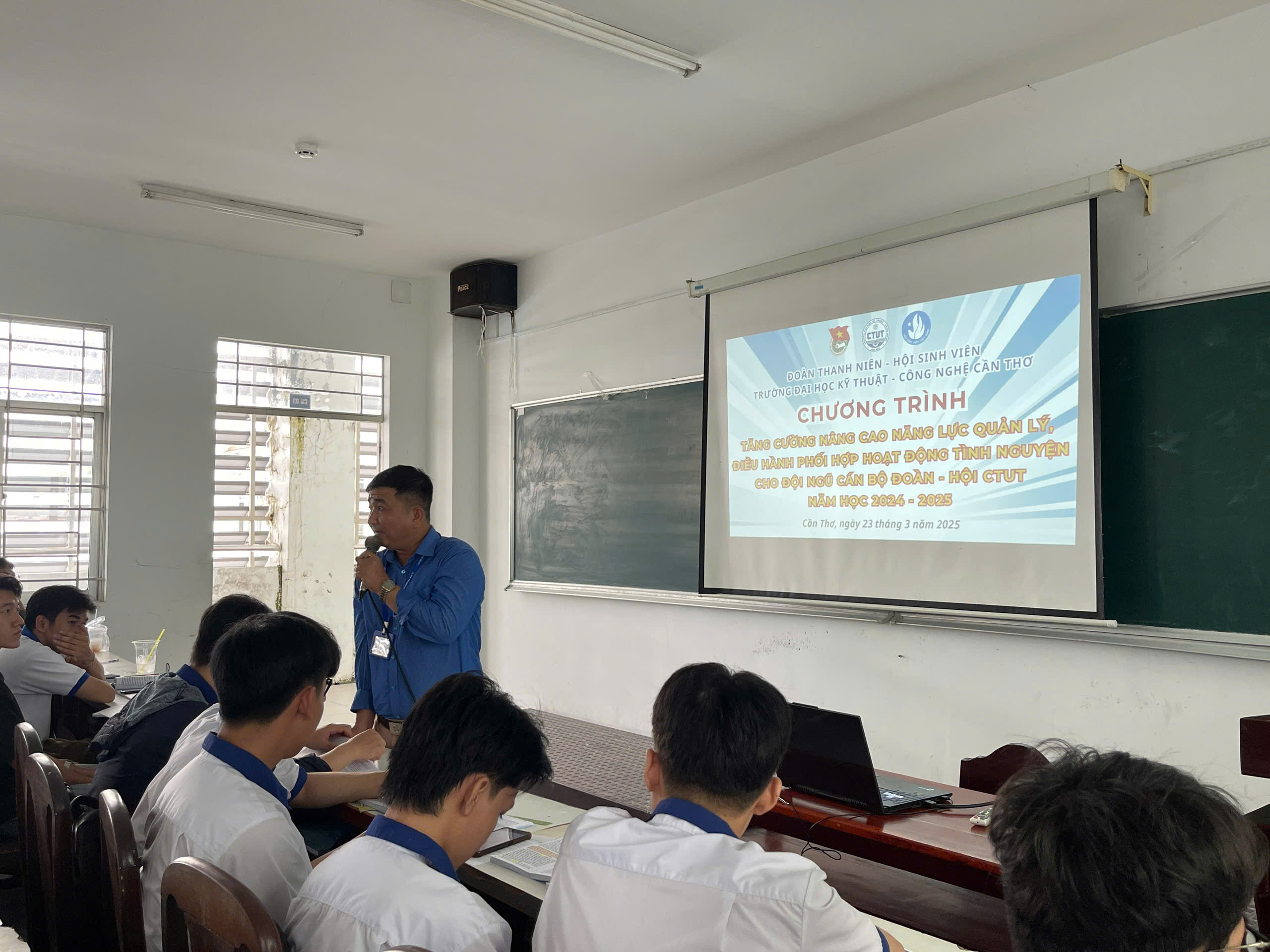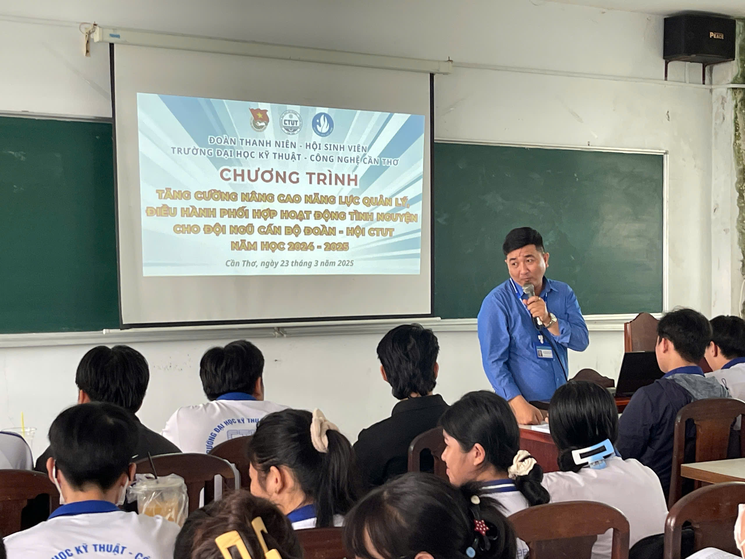 Với mục tiêu không ngừng nâng cao chất lượng công tác Đoàn và phong trào sinh viên, ngày 23/3/2025, Đoàn Thanh niên – Hội Sinh viên Trường Đại học Kỹ thuật – Công nghệ Cần Thơ triển khai Chương trình “Tăng cường nâng cao năng lực quản lý, điều hành phối hợp hoạt động tình nguyện cho đội ngũ cán bộ Đoàn, cán bộ Hội Sinh viên” trong năm học 2024 – 2025.