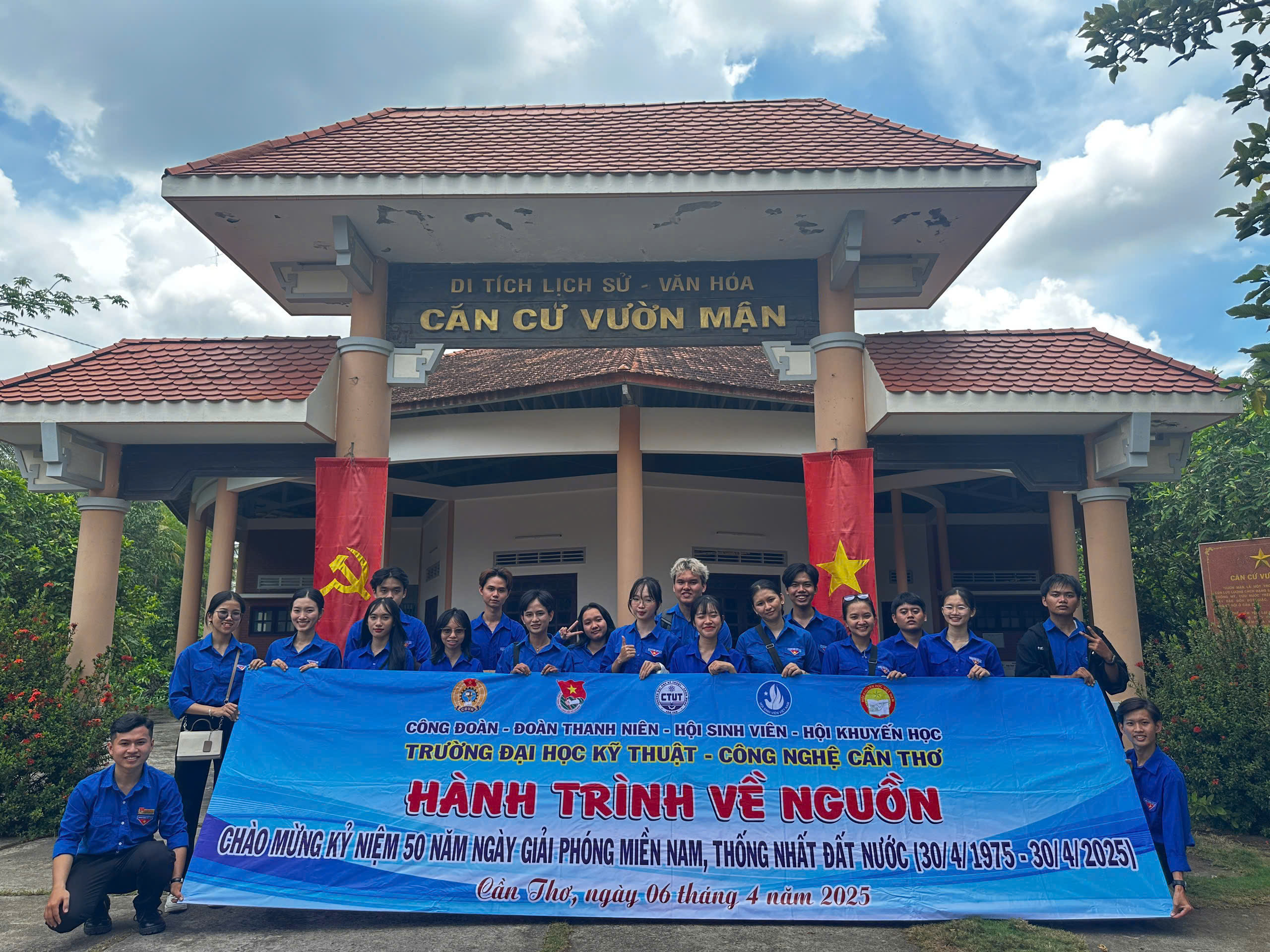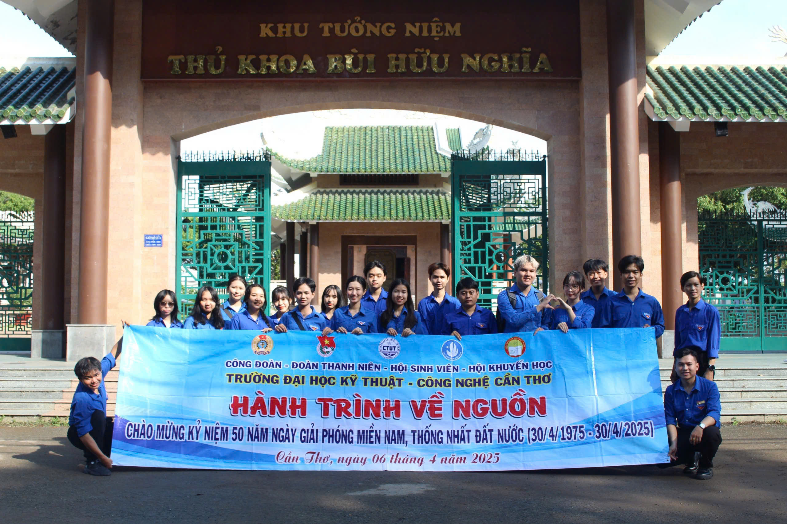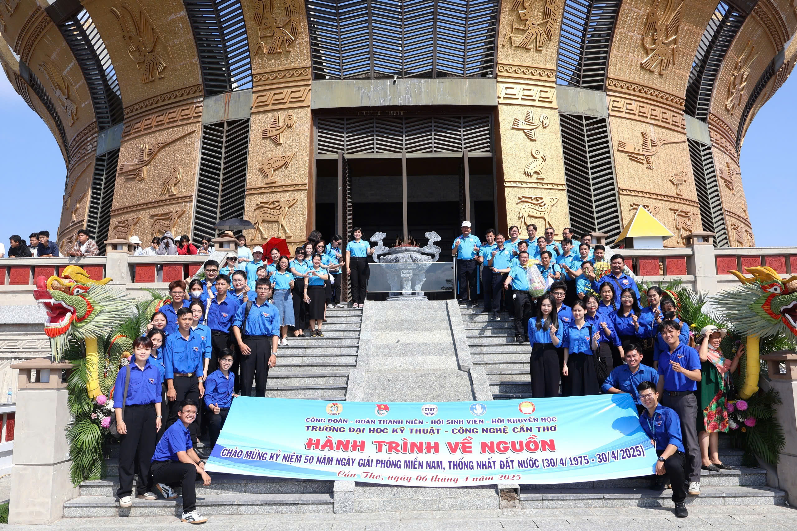 Nhằm đẩy mạnh công tác giáo dục truyền thống, bồi dưỡng lòng yêu nước và tri ân các bậc tiền nhân đã có công dựng nước và giữ nước, sáng ngày 06/4/2025, Đoàn Thanh niên – Hội Sinh viên Trường Đại học Kỹ thuật – Công nghệ Cần Thơ đã tổ chức Hành trình đến các địa chỉ đỏ trên địa bàn thành phố Cần Thơ, năm học 2024 – 2025. Hành trình đã đưa hơn 150 cán bộ Đoàn, đoàn viên, thanh niên đến tham quan, học tập tại Đền thờ Vua Hùng, Khu di tích Mộ Thủ khoa Bùi Hữu Nghĩa và Khu di tích Vườn mận.