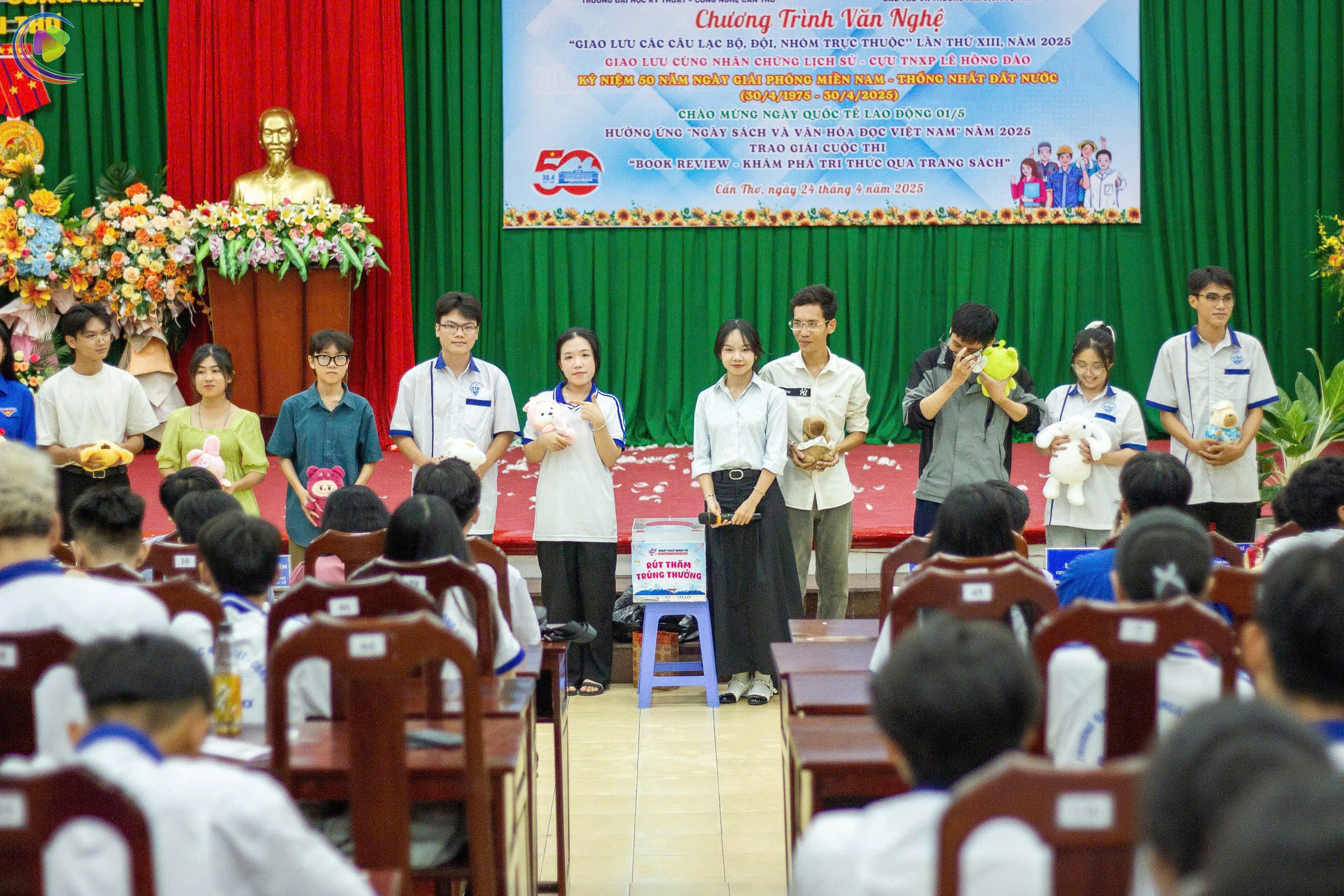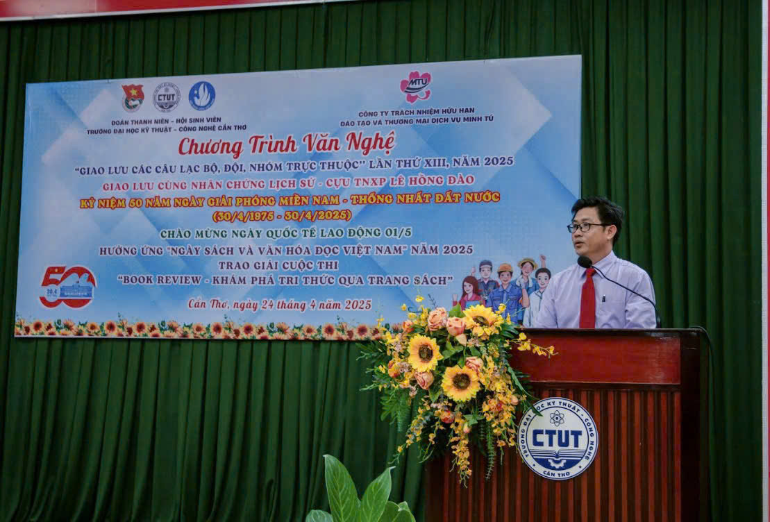 Tối ngày 24/4/2025, tại Hội trường A CTUT, Đoàn Thanh niên – Hội Sinh viên Trường Đại học Kỹ thuật – Công nghệ Cần Thơ đã tổ chức thành công Chương trình văn nghệ “Giao lưu các Câu lạc bộ, Đội, Nhóm trực thuộc” lần thứ XIII, năm 2025. Chương trình có sự tham gia của 350 cán bộ Đoàn, đoàn viên, thanh niên cùng sự hiện diện của nhân chứng lịch sử – cựu Thanh niên xung phong Lê Hồng Dào.