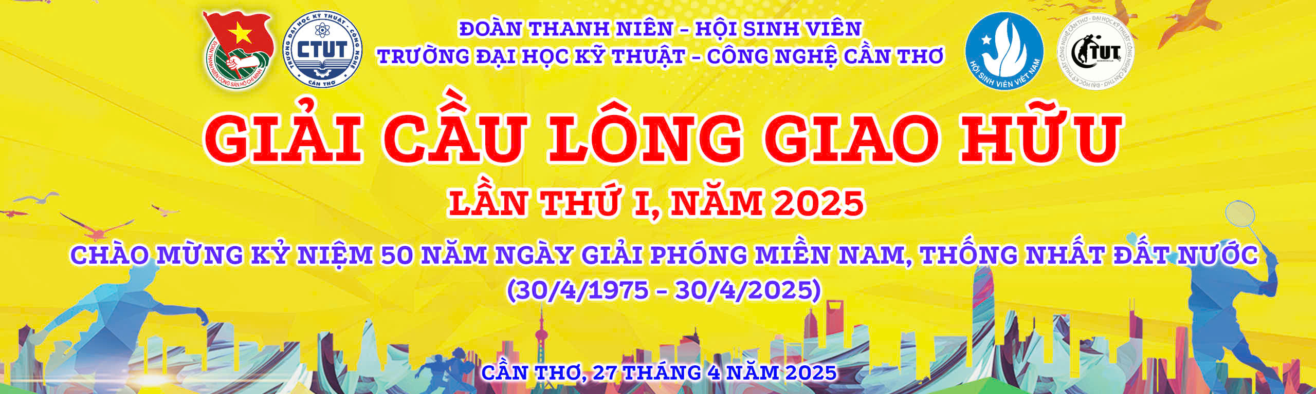 Nhằm đa dạng hóa các hoạt động rèn luyện thể chất và tạo thêm sân chơi bổ ích cho đoàn viên, sinh viên, ngày 27/4/2025, Đoàn Trường Đại học Kỹ thuật – Công nghệ Cần Thơ tổ chức “Giải cầu lông giao hữu lần thứ I năm 2025” tại Nhà thi đấu đa năng CTUT, thu hút sự tham gia thi đấu của 125 sinh viên yêu thích môn cầu lông.