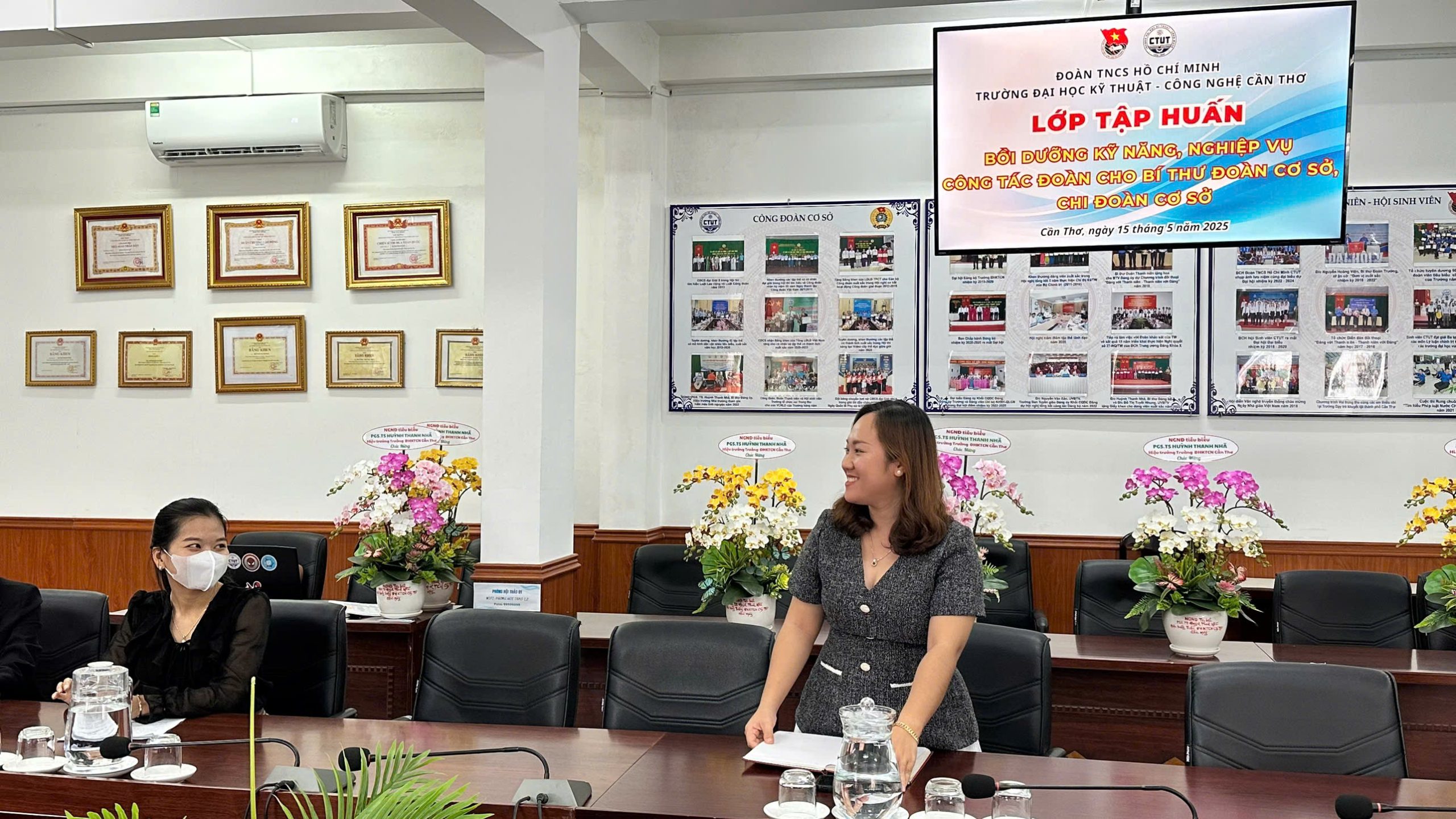 Ngày 15/5/2025, Đoàn Trường Đại học Kỹ thuật – Công nghệ Cần Thơ tổ chức Lớp Tập huấn, bồi dưỡng kỹ năng, nghiệp vụ công tác Đoàn dành cho các Bí thư Đoàn khoa và Bí thư Chi đoàn cơ sở Khối hành chính năm học 2024 – 2025 tại phòng Hội Thảo 1. Đây là hoạt động thường niên có ý nghĩa quan trọng trong việc nâng cao chất lượng đội ngũ cán bộ Đoàn chủ chốt tại các đơn vị trực thuộc.