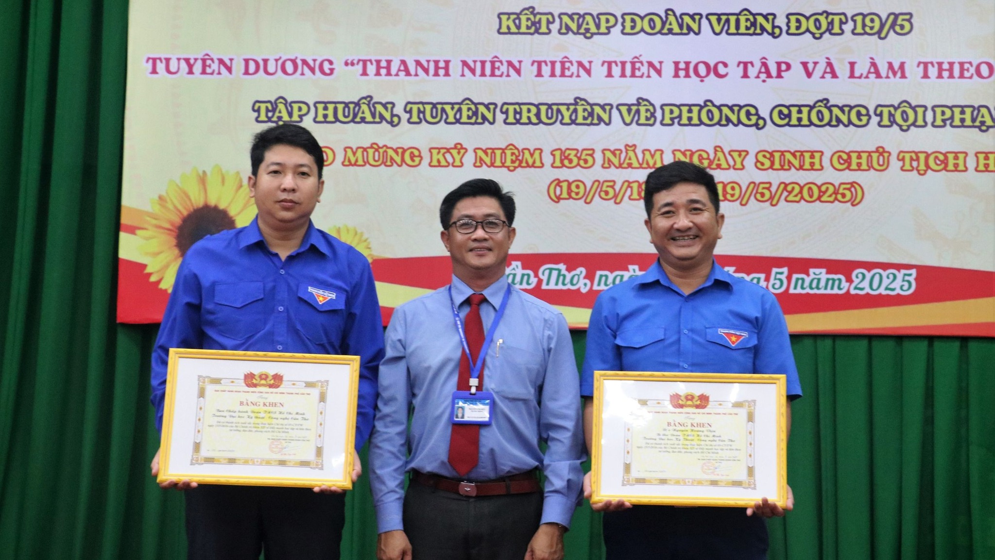 Đặc biệt, trong dịp này, Đoàn Trường Đại học Kỹ thuật – Công nghệ Cần Thơ vinh dự đón nhận Bằng khen của Thành đoàn Cần Thơ vì đã có thành tích tiêu biểu trong việc triển khai và thực hiện hiệu quả Chỉ thị số 05-CT/TW của Bộ Chính trị về “Đẩy mạnh học tập và làm theo tư tưởng, đạo đức, phong cách Hồ Chí Minh”. Đây là sự ghi nhận xứng đáng cho những nỗ lực không ngừng của tập thể cán bộ Đoàn – Hội và đoàn viên nhà trường trong việc phát huy vai trò, trách nhiệm của thanh niên trong giai đoạn mới.
