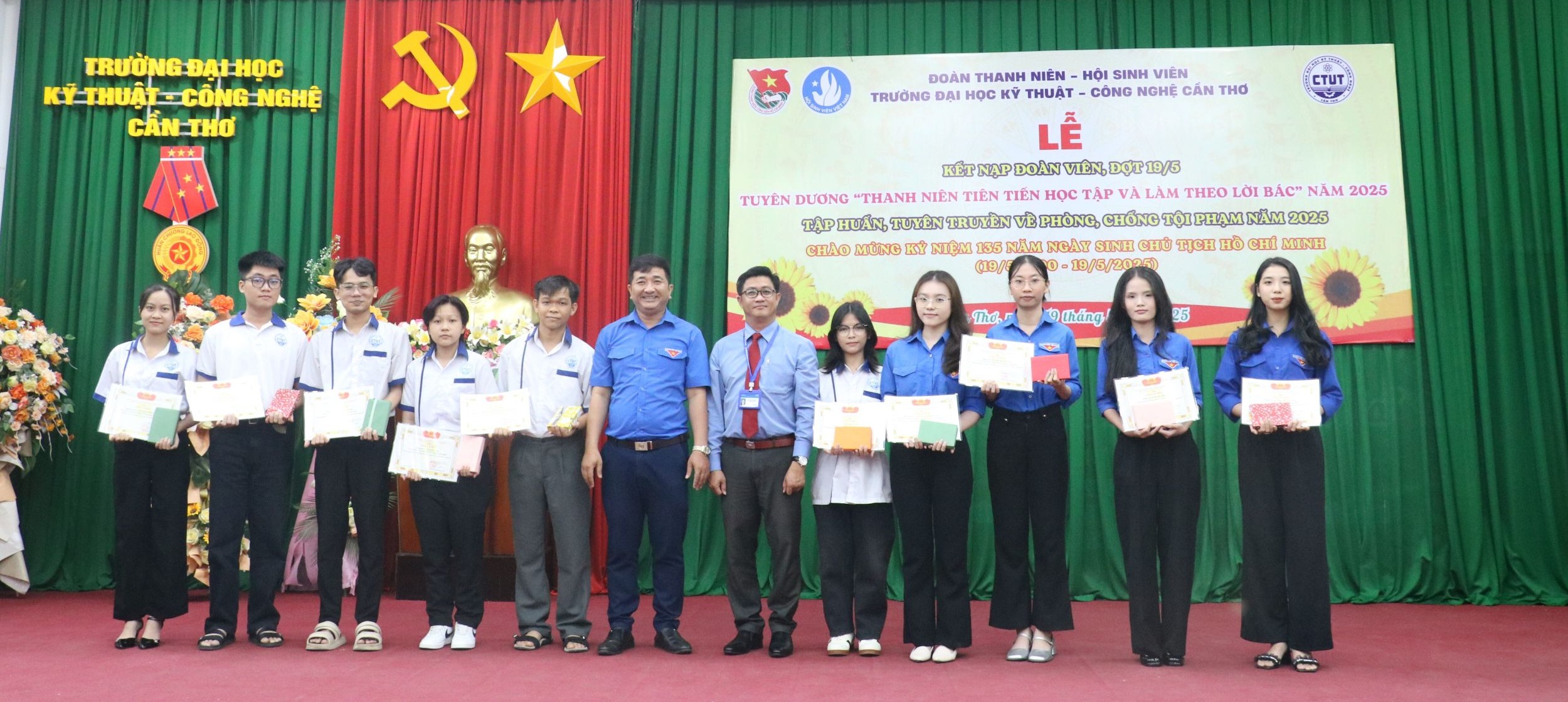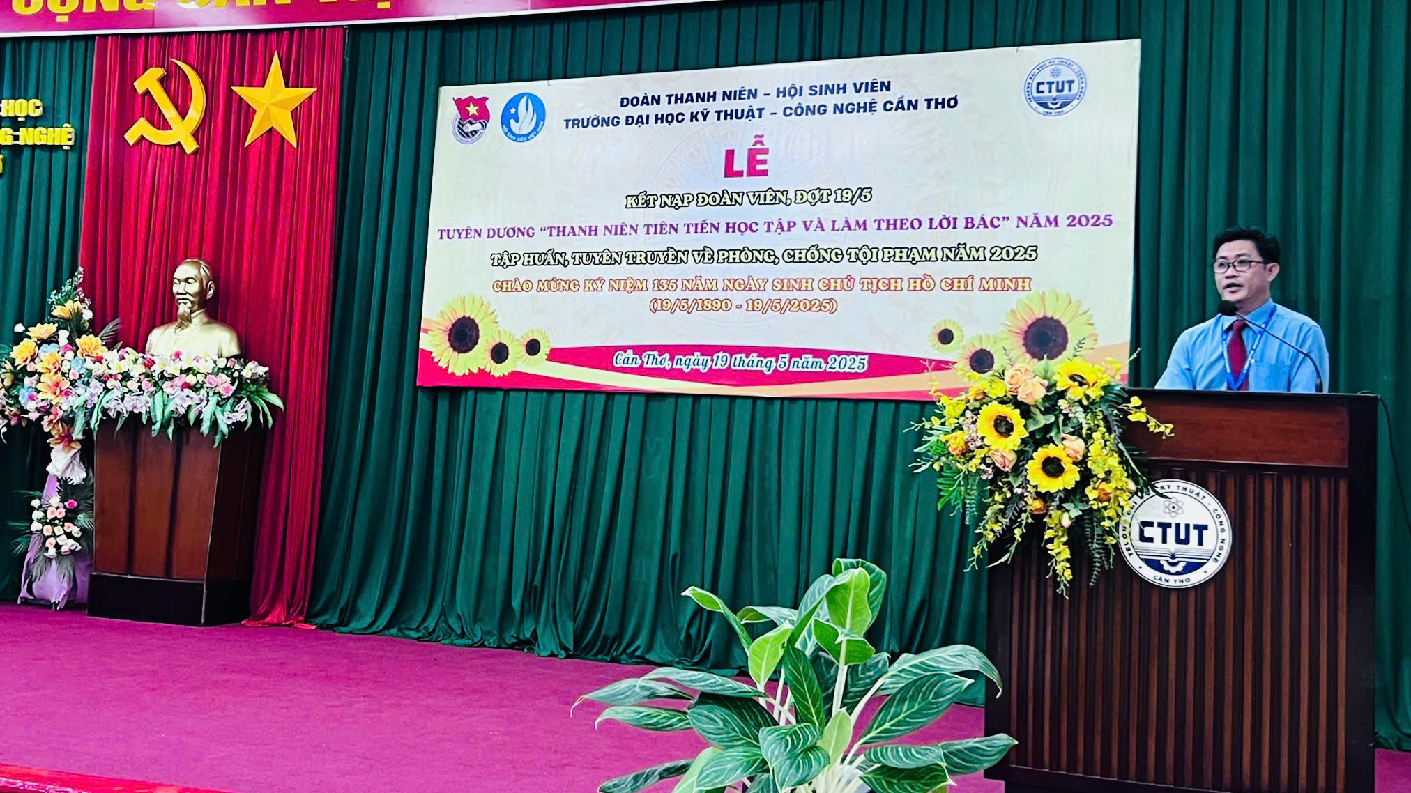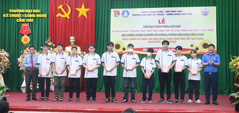 Ngày 19/5/2025, Đoàn Trường Đại học Kỹ thuật – Công nghệ Cần Thơ đã long trọng tổ chức Lễ tuyên dương “Thanh niên tiên tiến học tập và làm theo lời Bác” năm 2025; Lễ kết nạp đoàn viên; Chào mừng kỷ niệm 135 năm Ngày sinh Chủ tịch Hồ Chí Minh (19/5/1890 – 19/5/2025) tại Hội trường A CTUT, nhằm tôn vinh những cá nhân tiêu biểu và tiếp tục lan tỏa sâu rộng việc học tập, làm theo tư tưởng, đạo đức, phong cách Hồ Chí Minh trong đoàn viên, sinh viên.