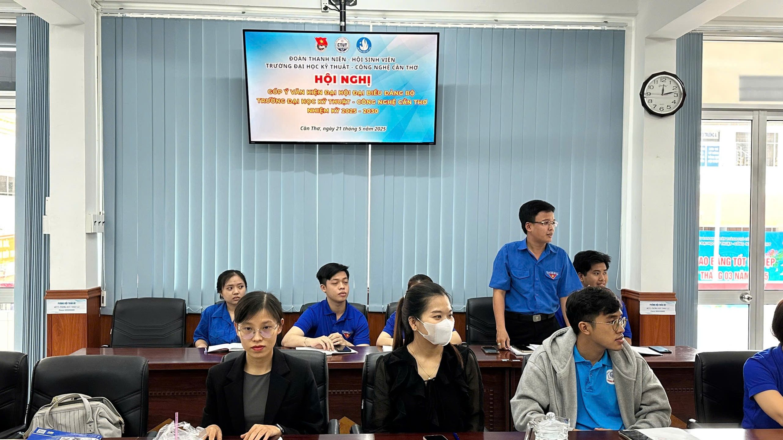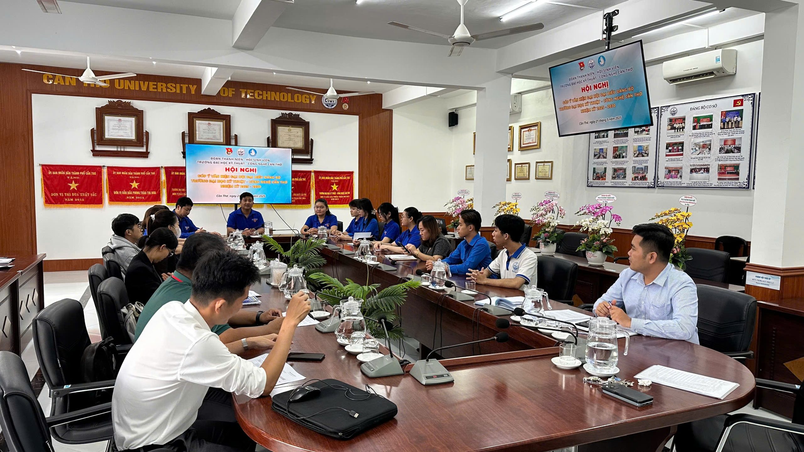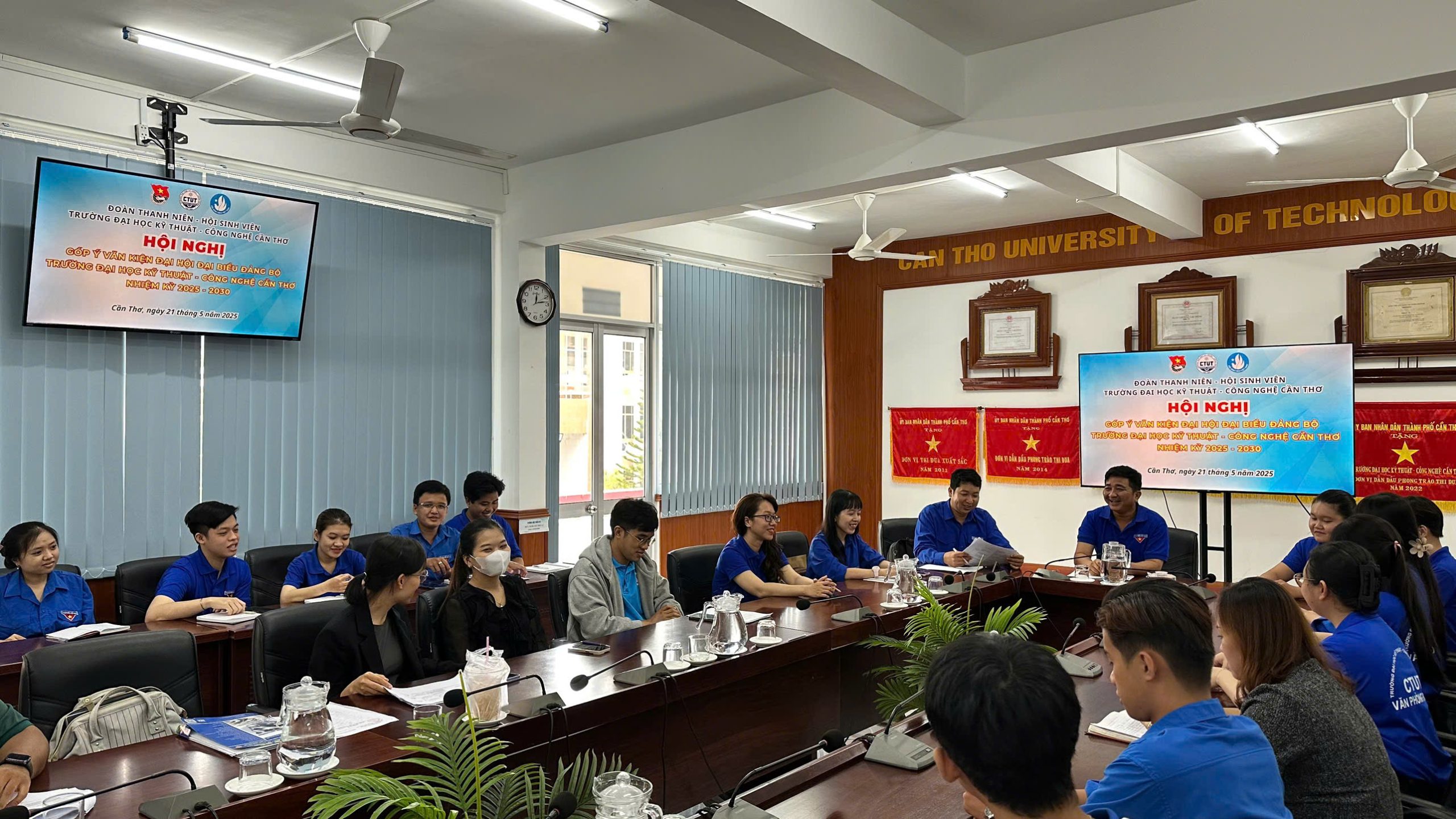 Thực hiện sự chỉ đạo của Đảng ủy Trường, nhằm phát huy tinh thần dân chủ và trí tuệ tập thể trong công tác xây dựng Đảng, ngày 21/5/2025, Đoàn Thanh niên – Hội Sinh viên Trường Đại học Kỹ thuật – Công nghệ Cần Thơ đã tổ chức thành công Hội nghị “Góp ý Văn kiện Đại hội Đại biểu Đảng bộ Trường Đại học Kỹ thuật – Công nghệ Cần Thơ nhiệm kỳ 2025 – 2030” tại phòng Hội thảo 1 CTUT, với hơn 50 cán bộ đoàn, đoàn viên, thanh niên dự.