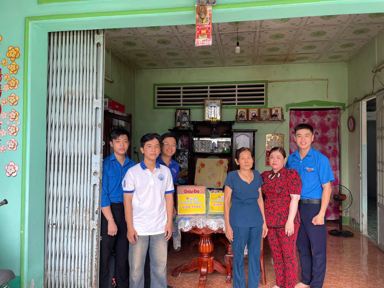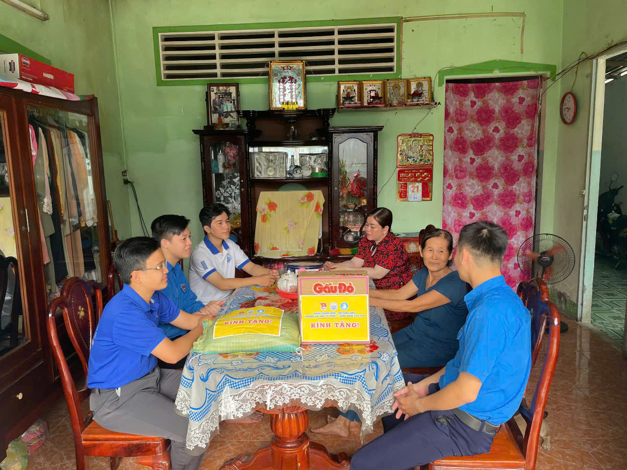 Trong buổi gặp gỡ, đại diện Đoàn Trường và Xã Đoàn Mỹ Khánh đã thăm hỏi sức khỏe, cuộc sống của gia đình chiến sĩ Trần Quang Minh, đồng thời trao tặng những phần quà thiết thực. Buổi thăm hỏi không chỉ mang giá trị vật chất mà còn là nguồn động viên tinh thần to lớn, giúp gia đình cảm nhận được sự sẻ chia, ấm áp từ cộng đồng.