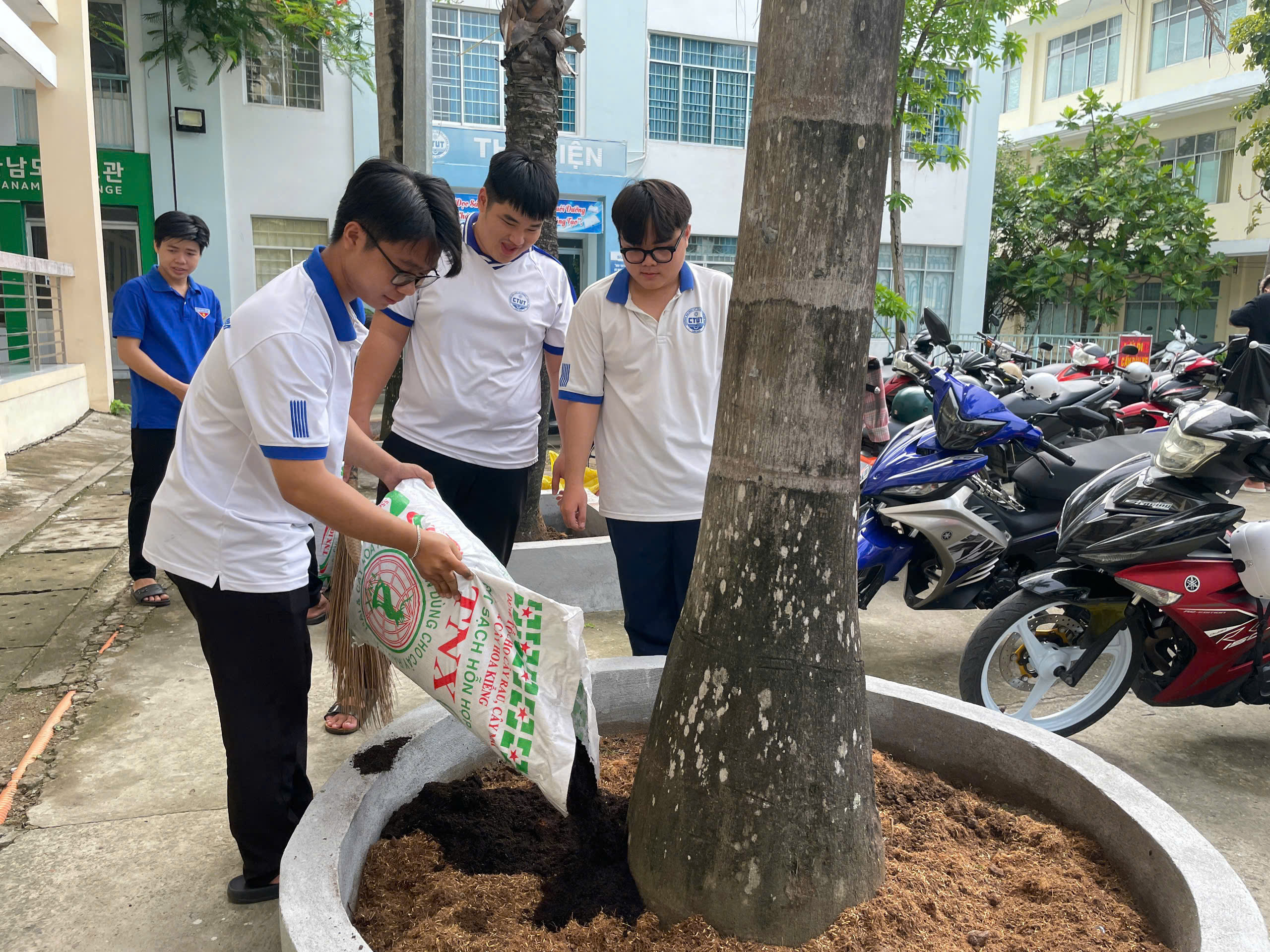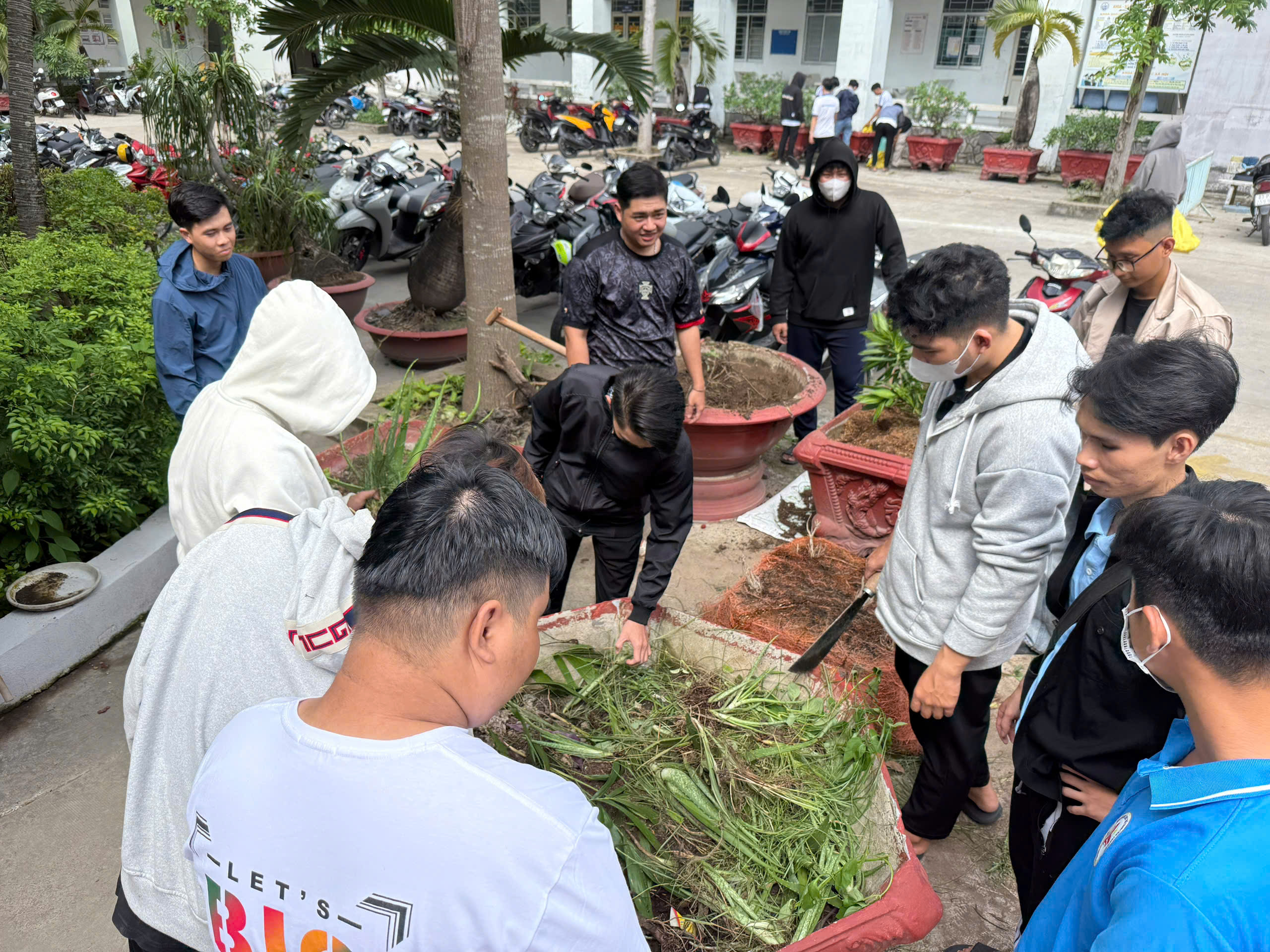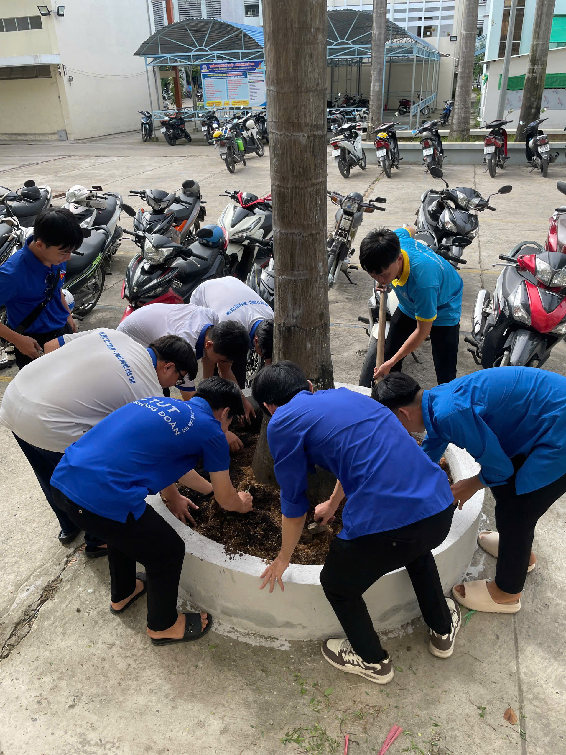 Các bạn sinh viên đã tiến hành quét dọn rác, lau chùi bảng thông báo, thu gom lá cây rụng, dọn cỏ và làm sạch các khu vực bị che khuất lâu ngày, mang lại diện mạo tươi mới cho không gian học tập. Bên cạnh công tác vệ sinh, lực lượng tình nguyện còn tham gia trồng mới các cây xanh tại các khu vực còn trống trong sân trường, đồng thời tưới nước và chăm sóc lại các bồn hoa, hàng cây hiện hữu. Hoạt động không chỉ làm đẹp cảnh quan mà còn góp phần cải thiện chất lượng không khí, lan tỏa thông điệp sống xanh và bảo vệ môi trường tới toàn thể sinh viên và cán bộ giảng viên.